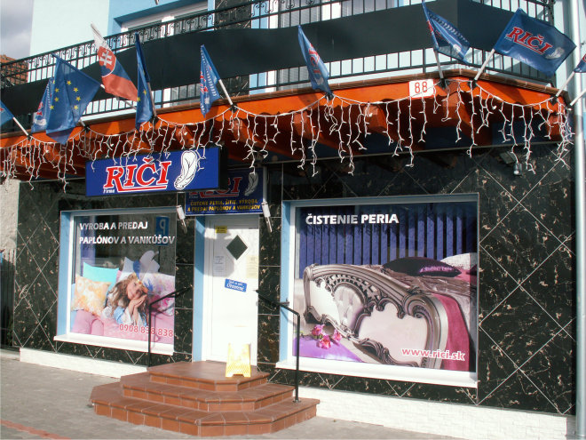 Firma RIČI vznikla v roku 1997 a postupne si vybudovala jedinečné postavenie a prvenstvo, čo sa týka tejto činnosti a poskytovania týchto služieb. Sme malá rodinná firma z Martina, ktorá si zakladá na precíznosti, presnosti a kvalite výrobkov. U nás si možete zakúpiť nové paplóny a vankúše priamo z výroby presne podľa vašich predstáv.